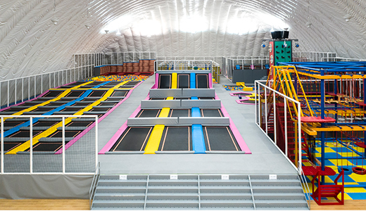 选址与灵活:充气膜结构室内游乐园对选址要求低,可建于城市商业综合体屋顶、闲置空地、社区周边,甚至可“按需迁移”(膜材与设备拆解后异地重建),适合短期租赁场地或需灵活调整位置的运营方。