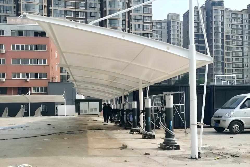高效散热:膜结构通常采用曲面设计,自然通风效果好,有助于驱散充电时产生的热量,降低设备和车棚内部温度,提升安全性与用户体验。