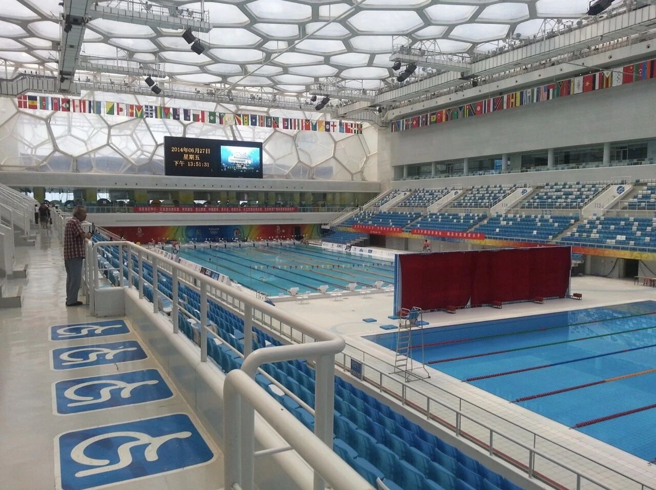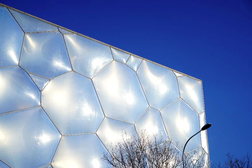 北京国家游泳中心"水立方"采用了双层ETFE膜设计,覆盖面积达到10万平方米,是当时世界上最大的ETFE膜结构工程,也是世界上首个完成"水冰转换"的双奥场馆。
