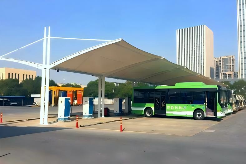 透光性好,白天无需额外照明,节省能耗。且膜材抗腐蚀、抗风载能力强,适应户外长期使用,施工快速不影响充电桩运营,符合电力设施安全规范。