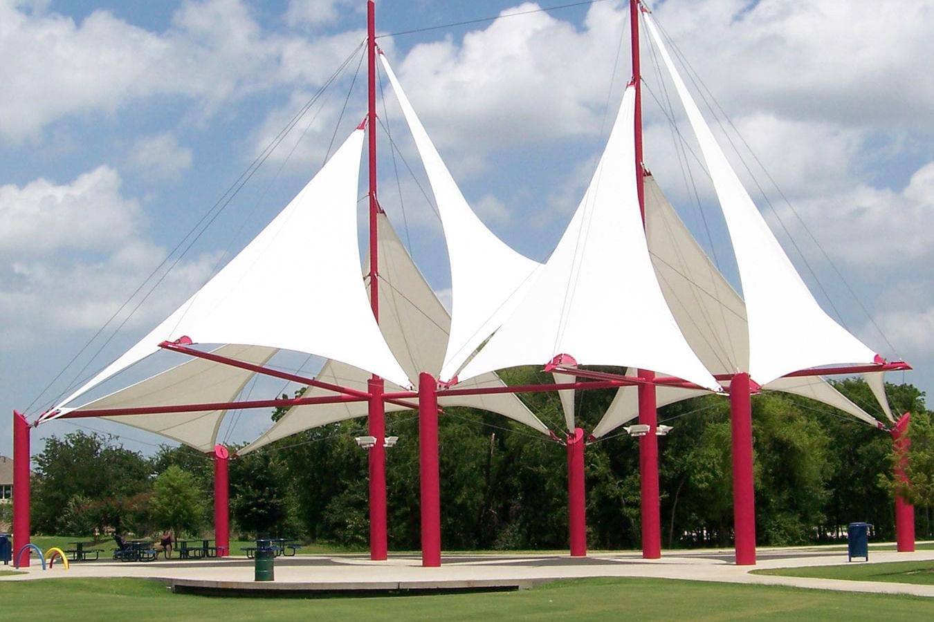 膜结构棚的应用涵盖停车棚、充电桩棚、景观棚、公园露营棚、收费站顶棚、加油站顶棚等多元场景,兼具美观性与实用价值。