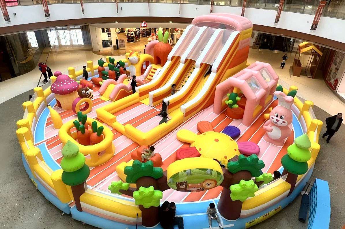 年关将至,充气城堡更是迎来运营旺季。一方面,春节前后家长与孩子拥有充足的闲暇时间,家庭出游需求激增,庙会、年货市集、景区新春游园会等活动密集开展,充气城堡能快速聚拢人气,成为亲子消费的热门选择。