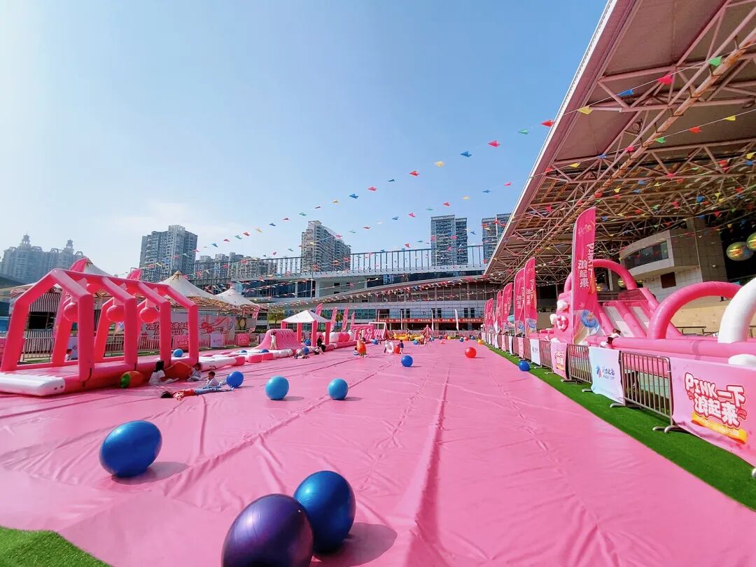 还可以在膜面上打造运动竞技场,配套足球框、篮球框等运动元素,满足亲子和儿童的互动需求。