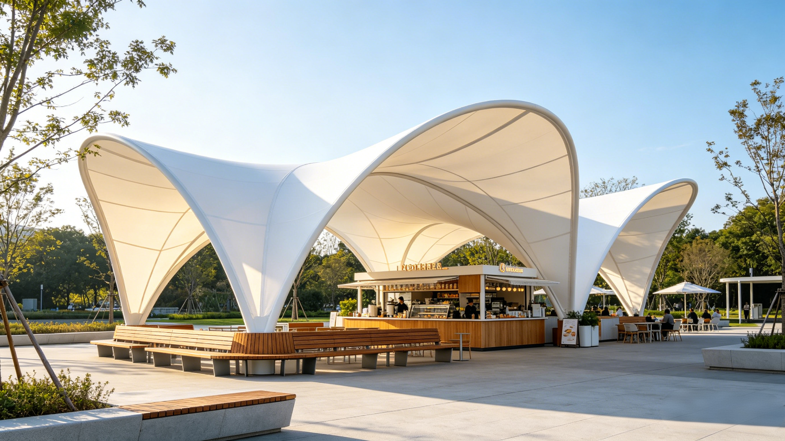 钢膜结构以轻钢为骨架、高性能膜材为围护,凭借造型自由、曲面可塑性强的特性,打破了传统混凝土建筑的直线束缚。